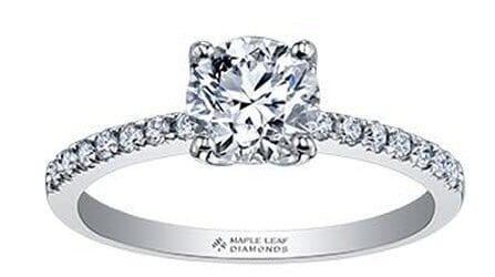 18 Karat White Gold Canadian Diamond Engagement Ring. 0.50 Carat Center Diamond 0.67 Carat Total Diamond Weight.