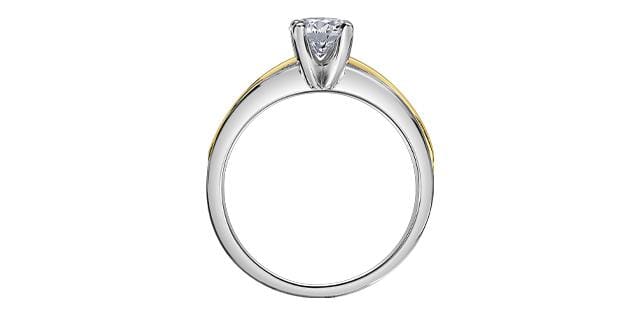 14 Karat White Gold, Yellow Gold Accent Canadian Diamond Solitaire Engagement Ring. 0.70 Carat Center Diamond 0.70 Carat Total Diamond Weight.