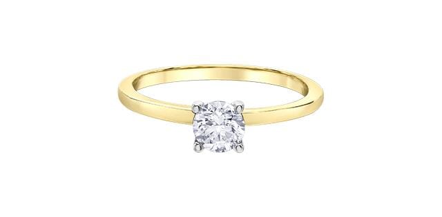 10 Karat Yellow Gold, Yellow Gold Accent Canadian Diamond Solitaire Engagement Ring. 0.50 Carat Center Diamond Weight.