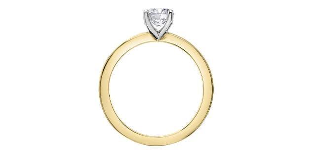 10 Karat Yellow Gold, White Gold Accent Canadian Diamond Solitaire Engagement Ring. 0.70 Carat Center Diamond Weight.
