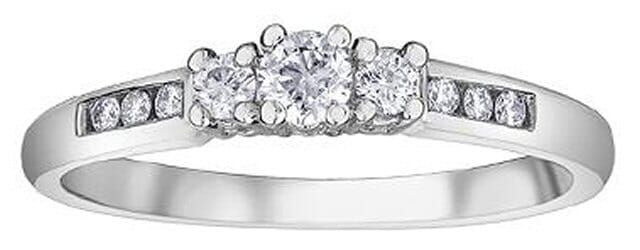 14 Karat White Gold Diamond Engagement Ring. 0.11 Carat Center Diamond 0.25 Carat Total Diamond Weight.