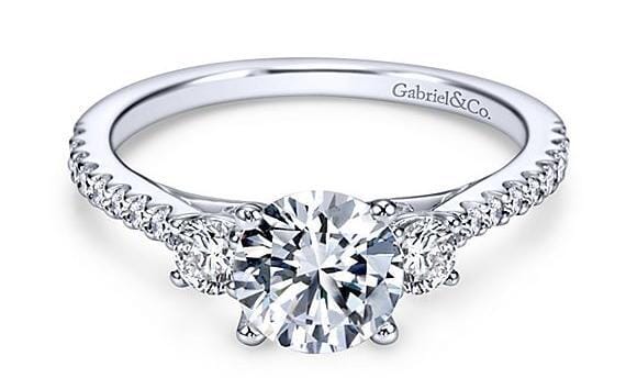 Discover the epitome of elegance with this exquisite 14 Karat White Gold Engagement Ring by Gabriel & Co. Featuring our Signature brilliant cut lab-grown diamond as the centrepiece, this ring is a symbol of timeless love and sophistication. The centre diamond is beautifully complemented by two sparkling earth-mined accent diamonds, creating a perfect harmony of brilliance and fire. The diamond-studded shoulders add an extra touch of glamour, making this ring a breathtaking piece of jewellery. Designed with the highest craftsmanship, this engagement ring is fully customizable to match your unique style. Whether you prefer a different shape or size for the centre diamond, or a change in the karat or colour of the gold, the possibilities are endless. Choose a ring that truly reflects your love story with Gabriel & Co.