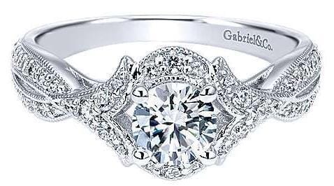 This elegant 14 Karat White Gold engagement ring from Gabriel & Co. features our Signature brilliant cut lab-grown diamond at the center, surrounded by a delicately designed halo. The diamond shoulders add an extra touch of brilliance, enhancing the beauty of the intricate design. With its combination of lab-grown and earth-mined accent diamonds, this piece is a perfect blend of luxury and sustainability. Ideal for a proposal or a special milestone, this customizable ring allows you to tailor the design to your preferences.
