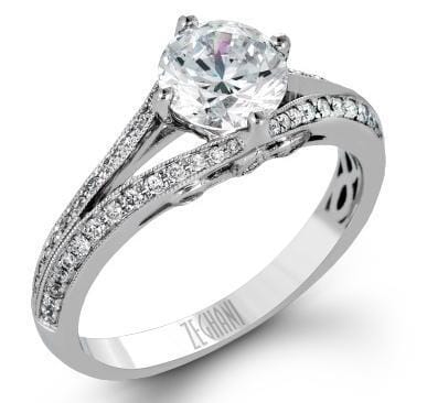 14 Karat White Gold Engagement Ring. Featuring A Signature Created Lab Grown Center Diamond And Earth Mined Accent Diamonds.1.00 Carat Center Diamond 1.24 Carat Total Diamond Weight.