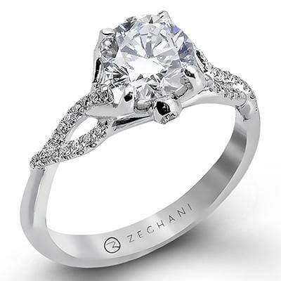 This stunning 14 Karat White Gold engagement ring from Zeghani features a Signature brilliant cut lab-grown diamond at its centre. Earth-mined diamonds accentuate the shoulders, creating a sparkling and elegant look. With a modern twist on classic design, the intricate setting highlights the brilliance of each stone. A beautiful choice for those seeking a blend of tradition and innovation, this ring is perfect for engagements or special occasions. Customize the design to match your preferences, whether altering the diamond shape, size, or opting for platinum.