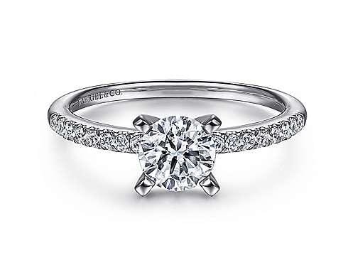 This elegant 14 Karat White Gold engagement ring by Gabriel & Co. features our Signature brilliant cut lab-grown diamond at its centre, accentuated by earth-mined diamonds along the shoulders for maximum sparkle. The design is timeless and sophisticated, perfect for symbolizing everlasting love. Fully customizable, you can alter the diamond's shape or size, change the gold's karat or colour, or even opt for platinum to create a one-of-a-kind piece that reflects your unique style. With our “One Year Satisfaction Guarantee,” this ring is crafted to meet all your desires.