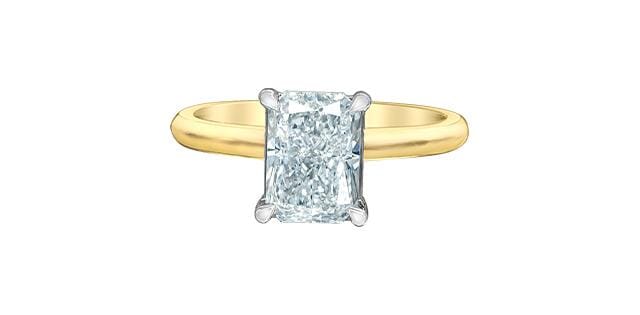 14 Karat Yellow Gold, White Gold Accent Signature Lab Grown Diamond Solitaire Engagement Ring. 2.00 Carat Center Diamond 2.00 Carat Total Diamond Weight.