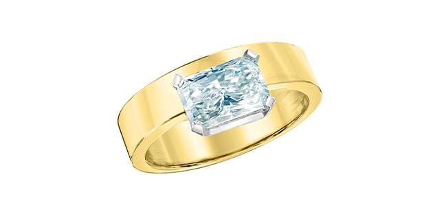 14 Karat Yellow Gold, White Gold Accent Signature Lab Grown Diamond Solitaire Engagement Ring. 1.58 Carat Center Diamond Weight.