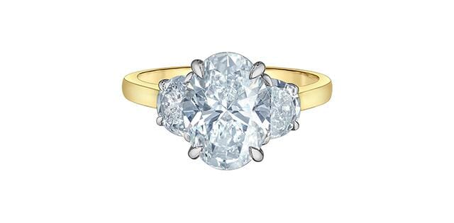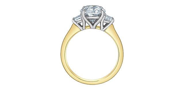 14 Karat Yellow Gold, White Gold Accent Signature Lab Grown Diamond Engagement Ring. 3.00 Carat Center Diamond 3.75 Carat Total Diamond Weight.
