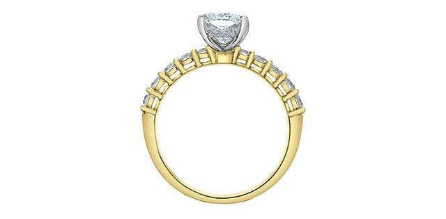 14 Karat Yellow Gold, White Gold Accent Signature Lab Grown Diamond Engagement Ring. 1.50 Carat Center Diamond 2.00 Carat Total Diamond Weight.