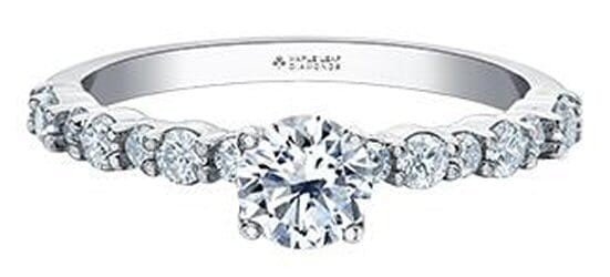 18 Karat White Gold Canadian Diamond Engagement Ring. 0.50 Carat Center Diamond 0.90 Carat Total Diamond Weight.