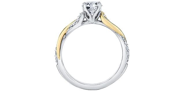18 Karat White Gold, Yellow Gold Accent Canadian Diamond Engagement Ring. 0.50 Carat Center Diamond 0.64 Carat Total Diamond Weight.