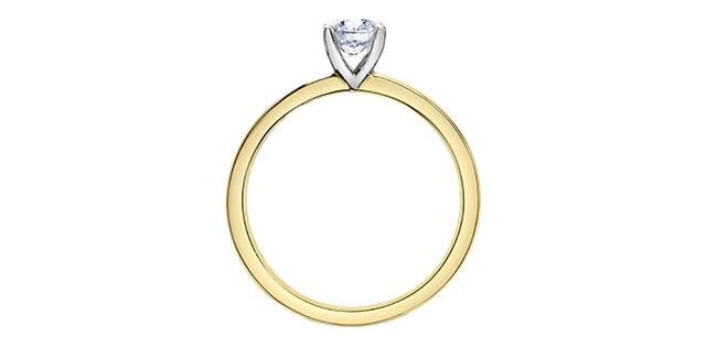 10 Karat Yellow Gold, Yellow Gold Accent Canadian Diamond Solitaire Engagement Ring. 0.50 Carat Center Diamond Weight.