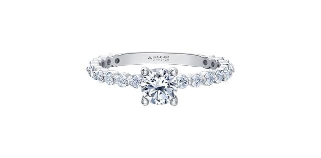 18 Karat White Gold Canadian Diamond Engagement Ring. 0.50 Carat Center Diamond 1.00 Carat Total Diamond Weight.
