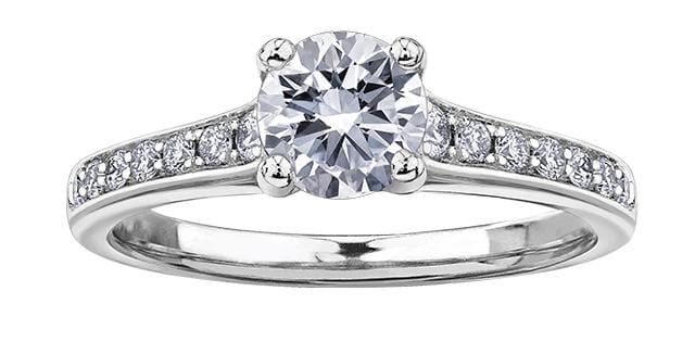 14 Karat White Gold Canadian Diamond Engagement Ring. 0.25 Carat Center Diamond 0.33 Carat Total Diamond Weight.