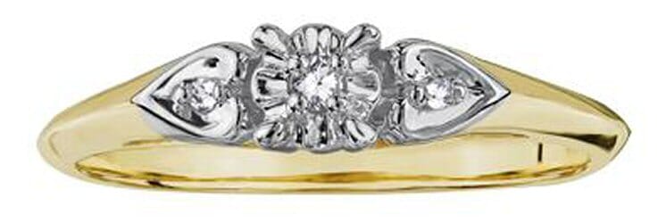10 Karat Yellow Gold, White Gold Accent Diamond Engagement Ring. 0.02 Carat Center Diamond 0.03 Carat Total Diamond Weight.