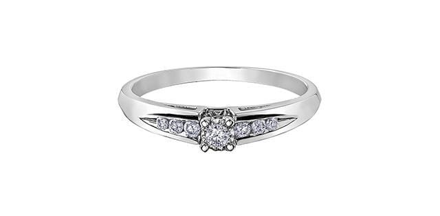 10 Karat White Gold Diamond Engagement Ring. 0.040 Carat Center Diamond 0.14 Carat Total Diamond Weight.