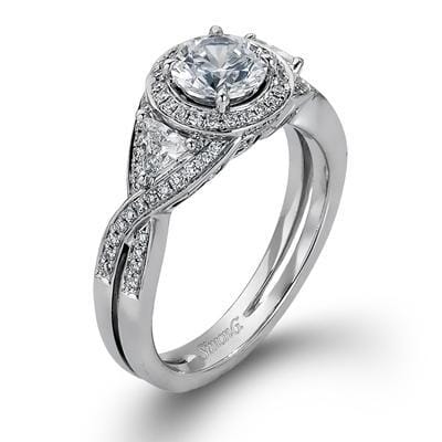 18 Karat White Gold Engagement Ring. Featuring A Signature Created Lab Grown Center Diamond And Earth Mined Accent Diamonds. 0.75 Carat Center Diamond 1.20 Carat Total Diamond Weight.