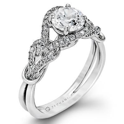 Zeghani presents this exquisite 14 Karat White Gold engagement ring, featuring a Signature created lab-grown centre diamond complemented by earth-mined accent diamonds. The intricate halo design and diamond-studded shoulders elevate the piece's brilliance, making it an ideal choice for a stunning proposal or special occasion. With its modern elegance, this ring offers a beautiful combination of style and sustainability. Customization options are available, including changes to the diamond shape, size, or gold type, ensuring the perfect match for your unique style.