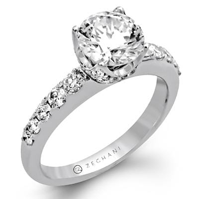 14 Karat White Gold Engagement Ring. Featuring A Signature Created Lab Grown Center Diamond And Earth Mined Accent Diamonds. 1.50 Carat Center Diamond 2.05 Carat Total Diamond Weight.