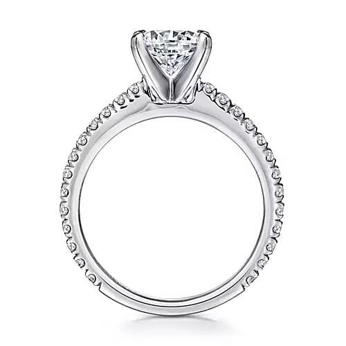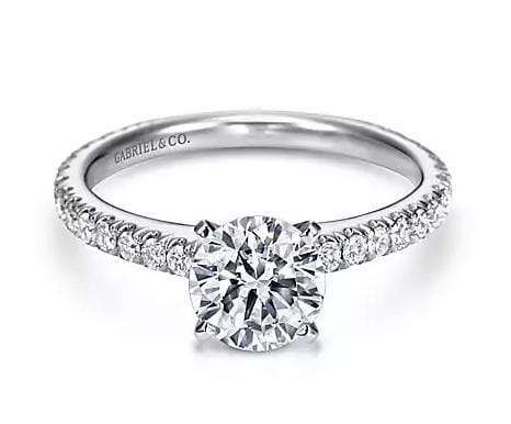 Gabriel & Co.'s 14 Karat White Gold Engagement Ring features a Signature lab-grown center diamond and earth-mined accent diamonds, blending classic elegance with a modern twist. The solitaire style is enhanced by diamond-adorned shoulders, adding a touch of brilliance that beautifully complements the center stone’s radiance. This ring design is fully customizable to suit your preferences—whether you wish to adjust the shape or size of the center diamond, choose a different gold karat or colour, switch to platinum, or blend elements from other designs. Traditional earth-mined Canadian diamonds are also available as an alternative. Enjoy peace of mind with our "One Year Satisfaction Guarantee."