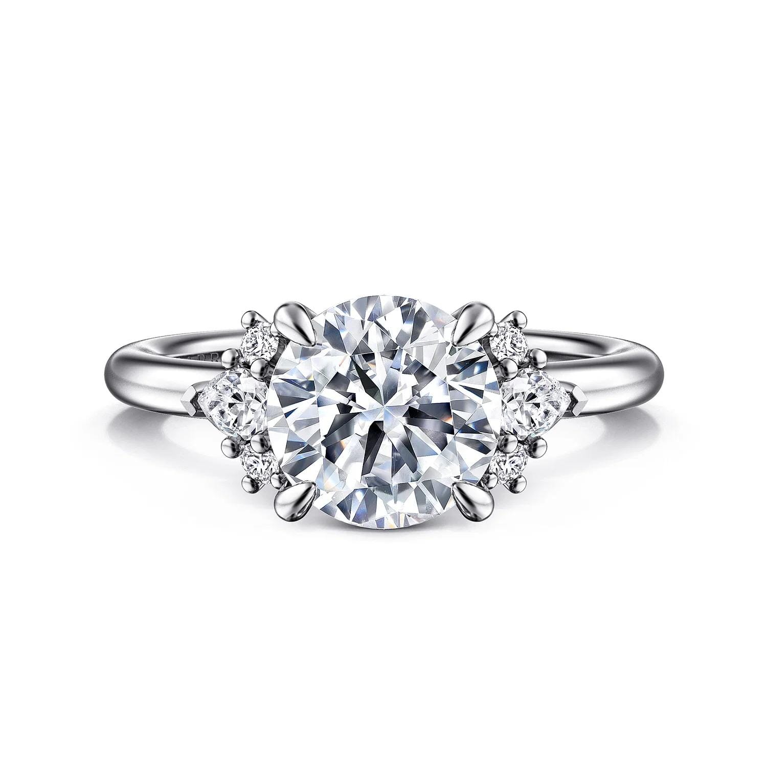 14 Karat White Gold Engagement Ring. Featuring A Signature Created Lab Grown Center Diamond And Earth Mined Accent Diamonds. 2.00 Carat Center Diamond 2.29 Carat Total Diamond Weight.