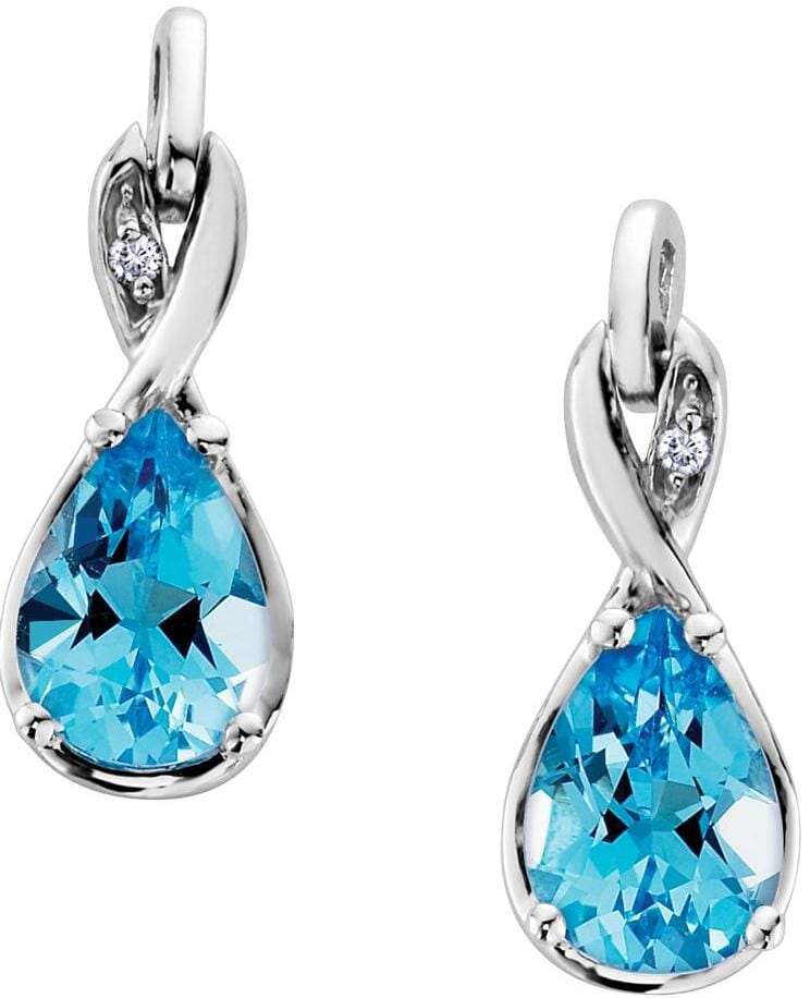 These elegant 10 Karat White Gold earrings feature pear-shaped blue topaz gemstones, accented by delicate diamonds. The graceful design showcases the vibrant blue topaz, creating a stunning contrast with the white gold setting. The diamond accents add a touch of sparkle, enhancing the overall brilliance of the piece. Measuring 17.2mm in height and 5.7mm in width, these earrings are perfect for adding a pop of color and sophistication to any outfit. They are a timeless addition to your jewellery collection.