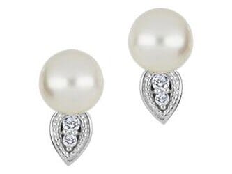 10 Karat White Gold Pearl, Canadian Diamond Earrings.0.075 Carat Total Diamond Weight.