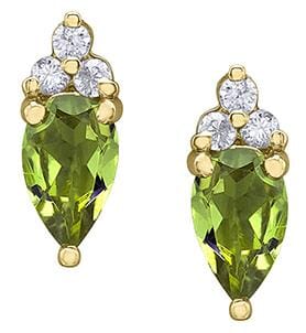 10 Karat Yellow Gold Peridot, Diamond Stud Earrings. 0.04 Carat Total Diamond Weight.