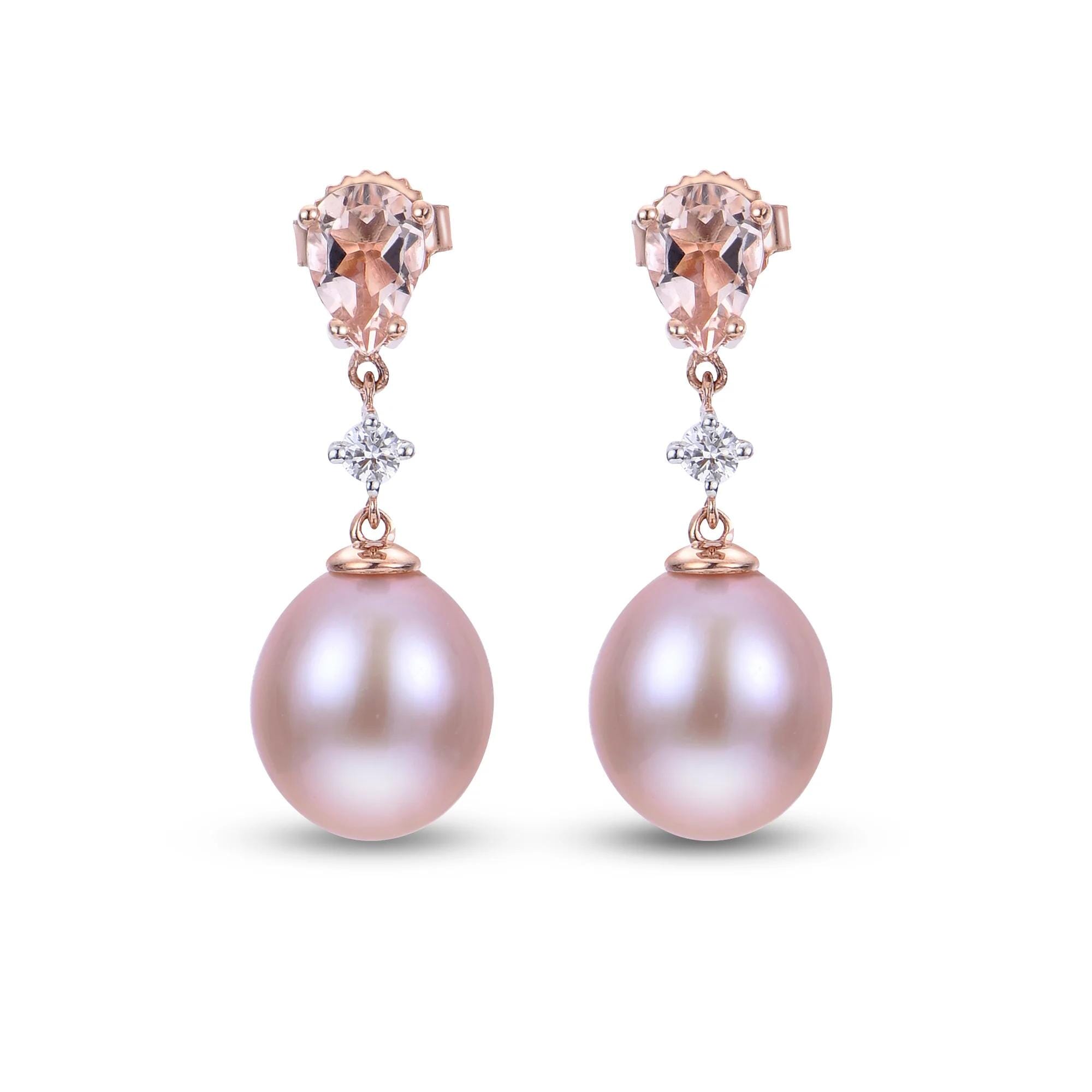 These exquisite 14 Karat Rose Gold earrings feature lustrous freshwater pearls, complemented by sparkling morganite and diamonds. The elegant drop design showcases the pearls beautifully, while the morganite and diamond accents add a touch of sophistication. The earrings measure 22.00mm in height and 8.00mm in width, making them a statement piece that exudes timeless elegance. These earrings are a perfect addition to any jewellery collection, adding a touch of luxury and refinement to your ensemble.