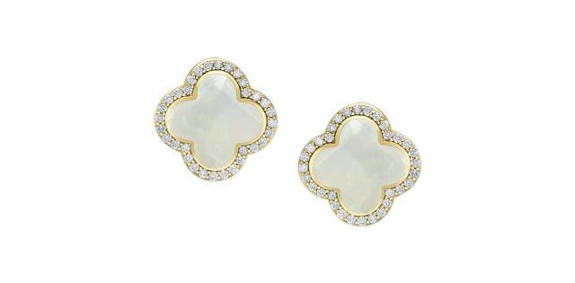 10 Karat Yellow Gold Mother of Pearl, Diamond Stud Earrings.0.32 Carat Total Diamond Weight.