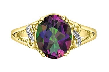 10 Karat Yellow Gold Mystic Topaz, Diamond Ring. 0.02 Carat Total Diamond Weight.