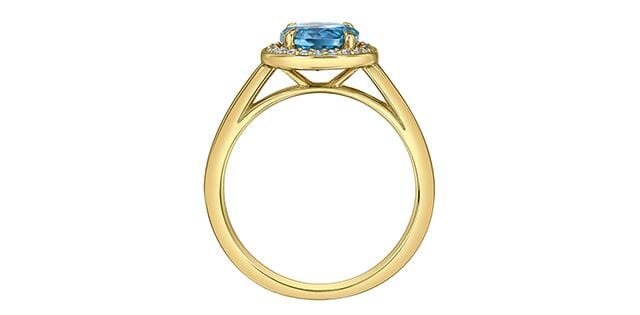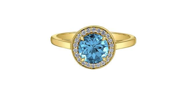 10 Karat Yellow Gold Diamond, Blue Topaz, With Natural Earth Mined Accent Diamonds Ring. 0.13 Carat Total Diamond Weight.