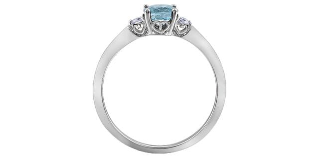 14 Karat White Gold Aquamarine, Canadian Diamond Ring. 0.08 Carat Total Diamond Weight.