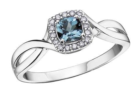 10 Karat White Gold Blue Topaz, Diamond Ring. 0.072 Carat Total Diamond Weight.