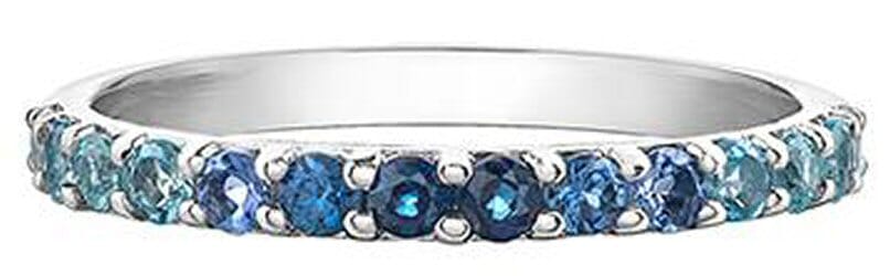 White Gold Aquamarine, Blue Sapphire, Blue Topaz, White Zircon Band.