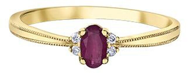 10 Karat Yellow Gold Ruby, Diamond Ring. 0.03 Carat Total Diamond Weight.