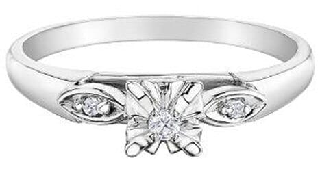 10 Karat White Gold Diamond Engagement Ring. 0.03 Carat Center Diamond 0.05 Carat Total Diamond Weight.