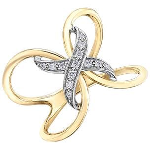 This exquisite 10 Karat Yellow Gold ring features elegant White Gold accents and dazzling round brilliant cut diamonds. The unique looped design intertwines both metals, creating a captivating and modern look. Perfect for adding a touch of sophistication to any outfit, this ring effortlessly combines classic elegance with contemporary style. Its exceptional design and craftsmanship make it a timeless treasure.