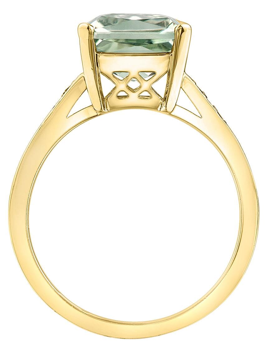 10 Karat Yellow Gold Green Amethyst, Diamond Ring. 0.10 Carat Total Diamond Weight.
