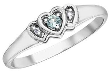 This charming 10 Karat White Gold ring features a captivating round brilliant cut aquamarine at its center. The solitaire gemstone is elegantly set within a heart-shaped design, flanked by delicate accent diamonds on either side. This piece is perfect for adding a touch of romance and sophistication to any occasion. The refined and timeless design ensures this ring will be a cherished piece in your jewellery collection.