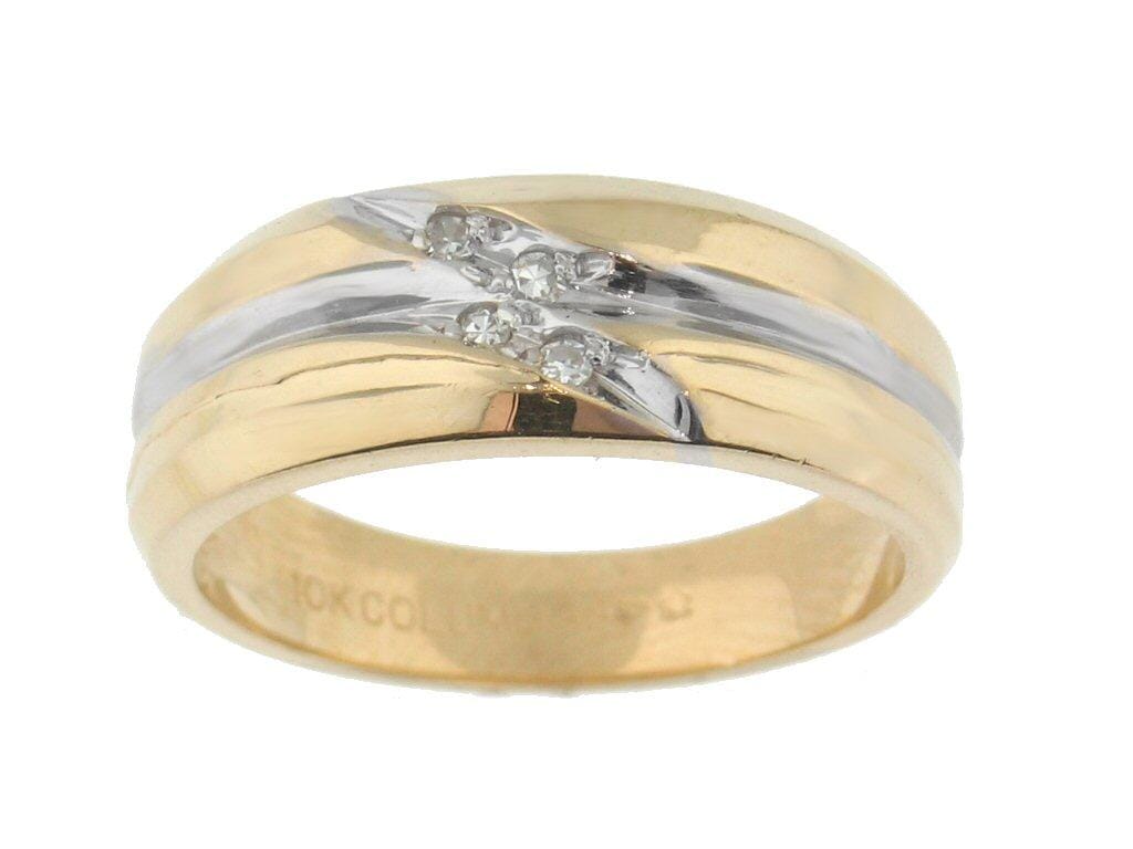 10 Karat Yellow Gold, White Gold Accent Diamond Band. 0.04 Carat Total Diamond Weight. Finger Size: 6 - Size adjustments are available for an additional fee.