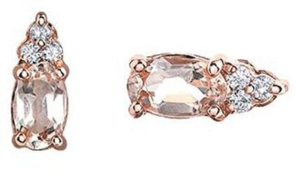 These elegant 10 Karat Rose Gold stud earrings with White Gold accents feature beautiful oval-shaped morganites, complemented by sparkling diamond accents. The soft pink hue of the morganites is perfectly highlighted by the warm rose gold and brilliant diamonds, creating a sophisticated and graceful look. Each earring measures 8.3mm in height and 3.7mm in width, making them a delicate and refined addition to any jewellery collection. Perfect for any occasion, these earrings are a stunning complement to your ensemble.