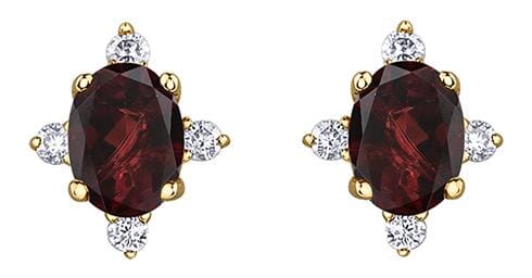10 Karat Yellow Gold Garnet, Diamond Stud Earrings.0.04 Carat Total Diamond Weight.
