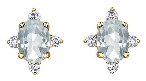 Yellow Gold White Topaz, Diamond Stud Earrings