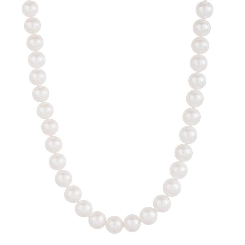 Cultured Freshwater Pearl Necklace. 8.0 - 8.5mm Pearls. 18 Inch Knotted Strand., Yellow Gold Clasp.