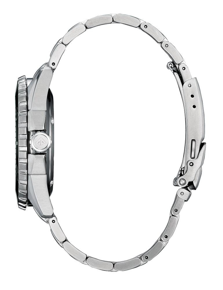 Citizen Gents Silver Tone, Stainless Steel Bracelet 200m 20ATM Water Resistant Eco-Drive Watch - Proof that a dive watch can be fun & functional with the CITIZEN ISO-compliant Promaster Diver. With Eco-Drive technology, it is powered by light and never needs a battery, so you'll never need to open your caseback or compromise your dive again. Featured in stainless steel with green aluminum bezel and matching green dial, one-way rotating elapsed time and water resistant to 200 metres.
