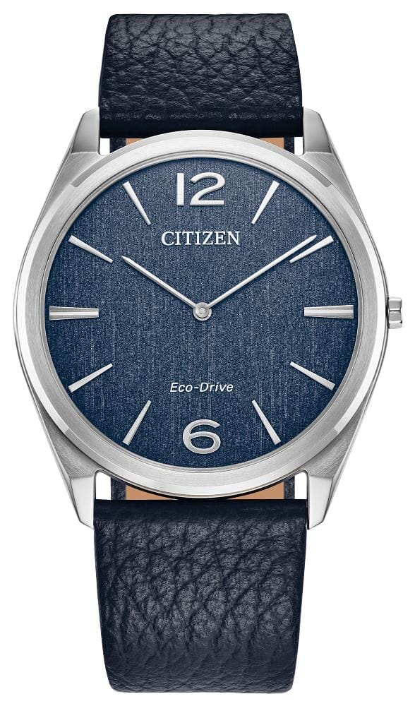 Citizen Unisex Leather Strap 50m 5ATM Water Resistant Eco-Drive Watch - Classic lines and a simple silhouette define the newest addition to the Classic collection. This all-purpose dress watch features a versatile silver-tone stainless steel 38.4mm case, a two-hand blue dial featuring an entrancing metallic powder aesthetic with silver-tone hands and markers, and is secured to the wrist via a grained blue leather strap with buckle closure. Sustainably powered by any light with Eco-Drive technology and never needs a battery. Water resistant to 50 metres.