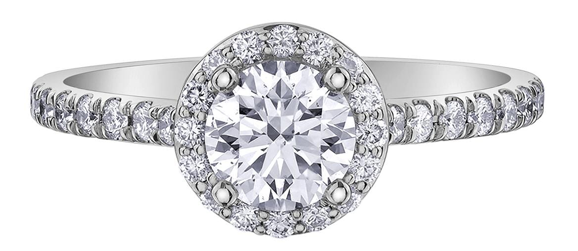 18 Karat White Gold Canadian Diamond Engagement Ring. 1.00 Carat Center Diamond 1.41 Carat Total Diamond Weight.