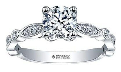 18 Karat White Gold Canadian Diamond Engagement Ring. 1.00 Carat Center Diamond 1.20 Carat Total Diamond Weight.